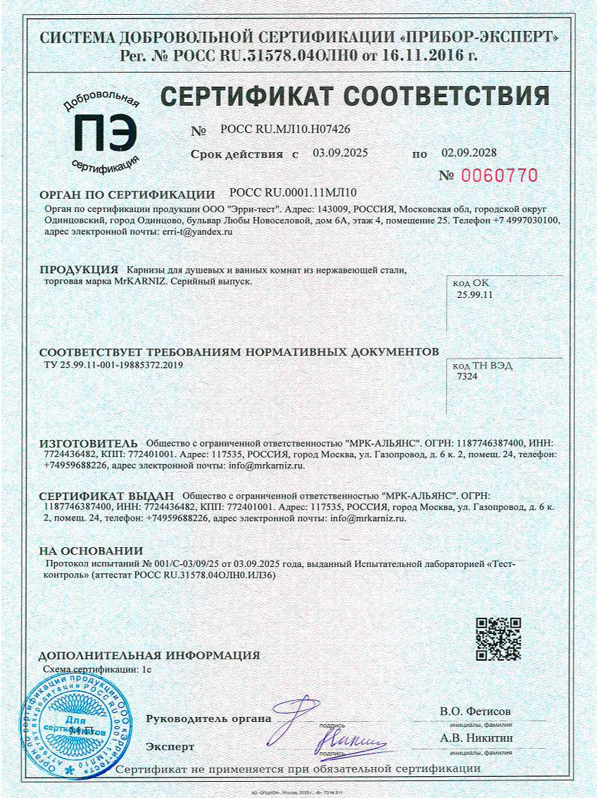 Сертификат №0355350 ГОСТ Р. Изготавливается в строгом соответствии ТУ 25.99.11–001–19885372–2019.